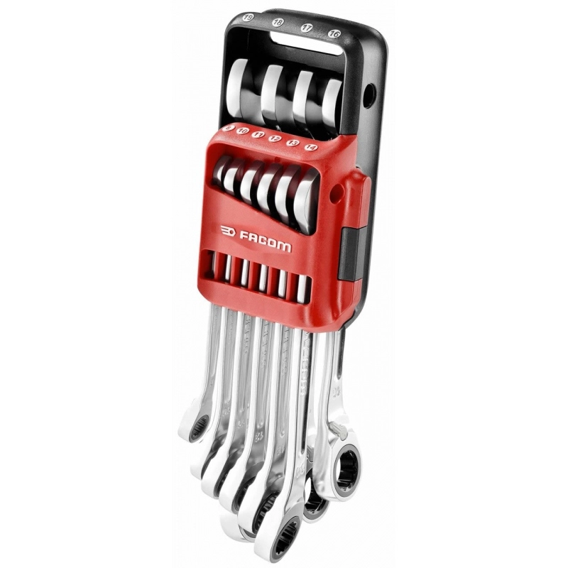 - – Jeu de 10 clés mixtes standard à cliquet : 467.8 – 10 – 11 – 12 – 13 – 14 – 16 – 17 – 18 – 19 mm.