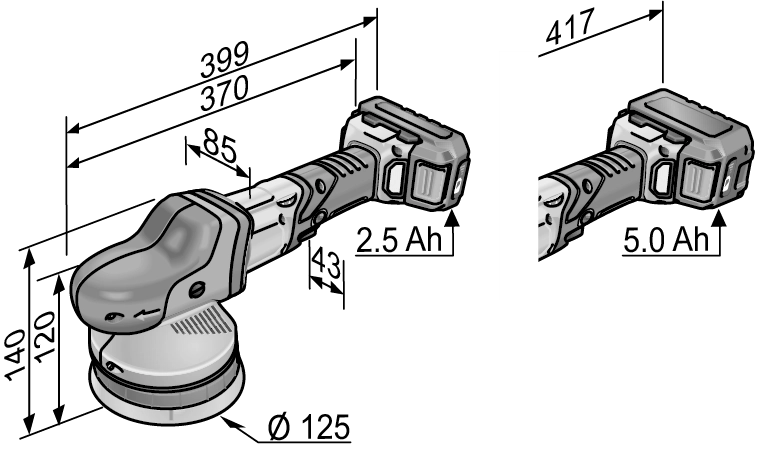 - Capacité 2,5 / 5,0 Ah