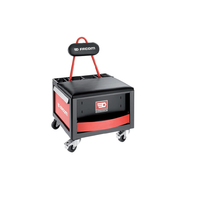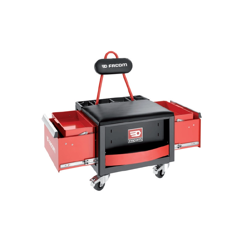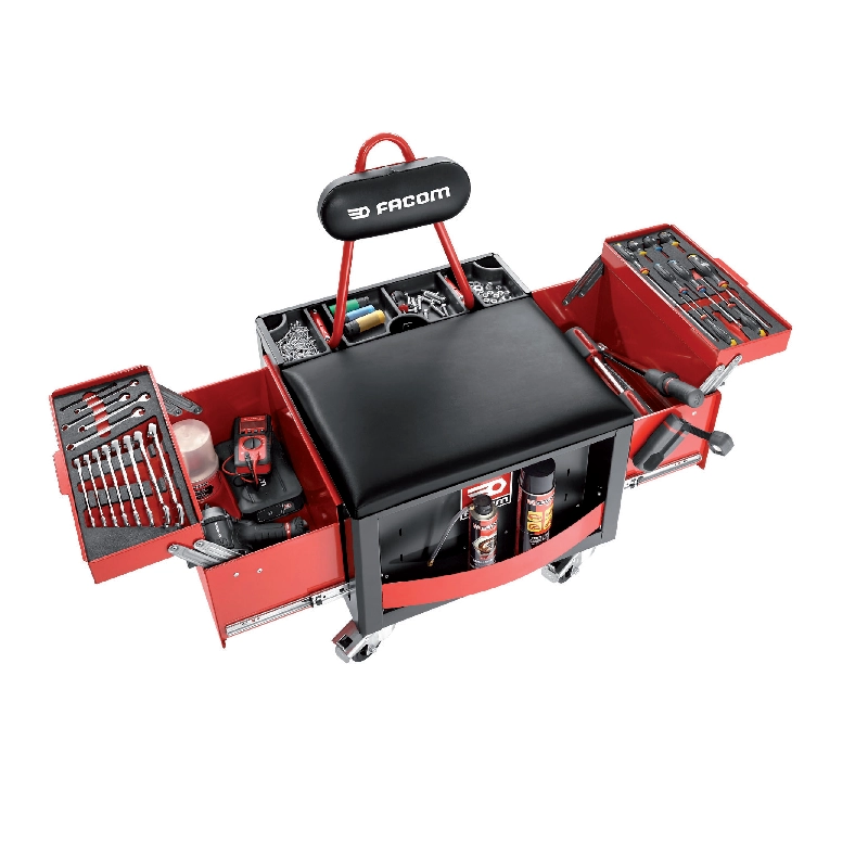 - L’accès aux outils, le blocage des roues, le déplacement peuvent être réalisés assis.
