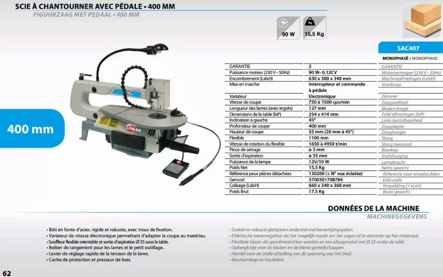 - Variateur de vitesse électronique permettant d’adapter la coupe au matériau.