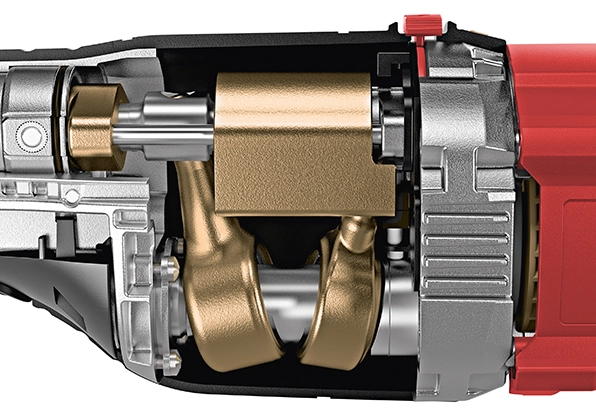 - Régulation électronique avec maintien constant du nombre de courses, interrupteur d’accélération, vitesse réglable par molette, protection contre les surcharges