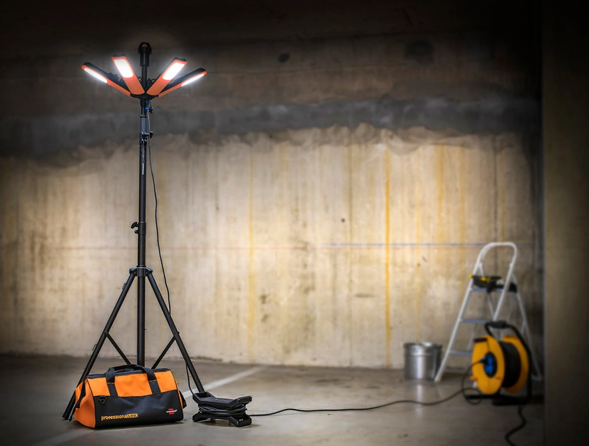 - Une traverse de fixation pour pied téléscopique (accessoire non-fourni) permet le montage de 2 projecteurs sur ce trépied.